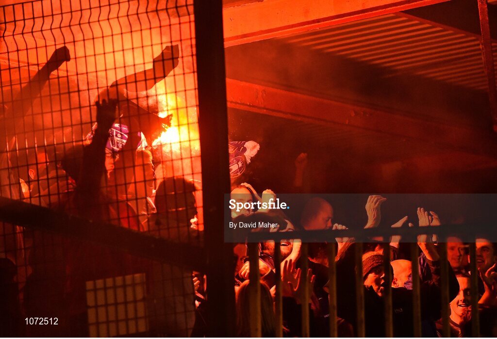 30 October 2015; ,Limerick FC, supporters celebrate after Shane Duggan, had scored his side's first goal. SSE Airtricity League Premier Division, Sligo Rovers v Limerick FC, The Showgrounds, Sligo. Picture credit: David Maher / SPORTSFILE
