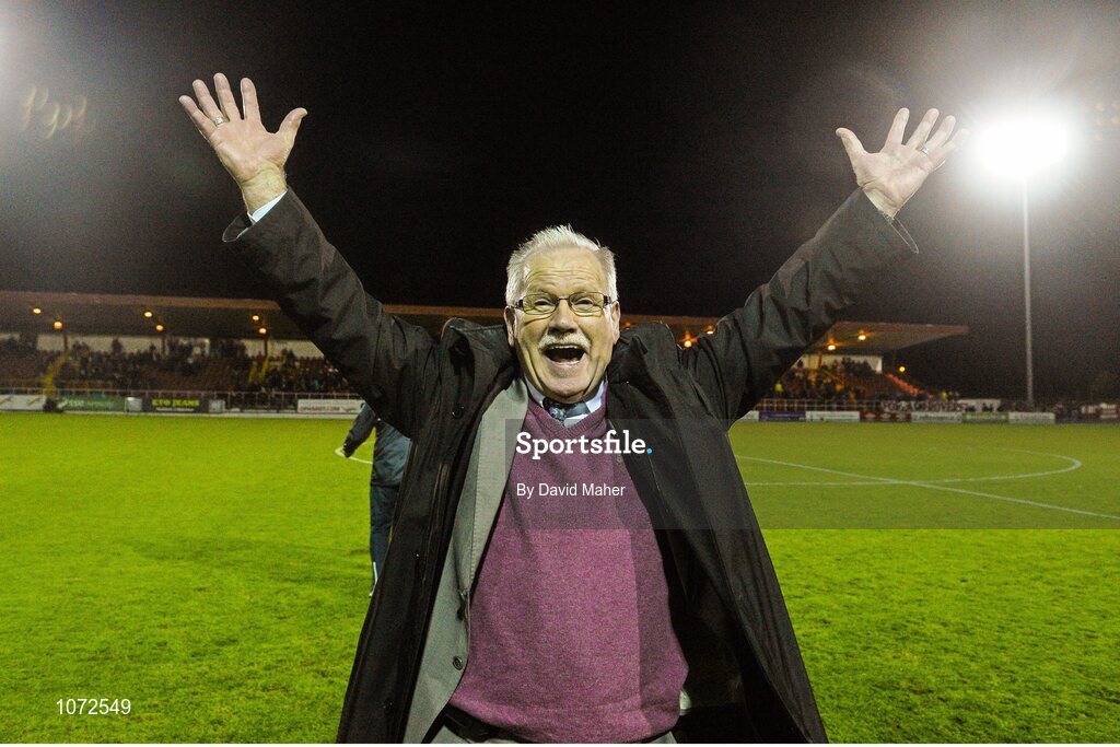 30 October 2015; Limerick FC chairman Pat O'Sullivan celebrates at the end of the game. SSE Airtricity League Premier Division, Sligo Rovers v Limerick FC, The Showgrounds, Sligo. Picture credit: David Maher / SPORTSFILE