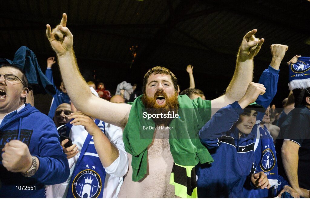 30 October 2015; Limerick FC supporters celebrate at the end of the game. SSE Airtricity League Premier Division, Sligo Rovers v Limerick FC, The Showgrounds, Sligo. Picture credit: David Maher / SPORTSFILE