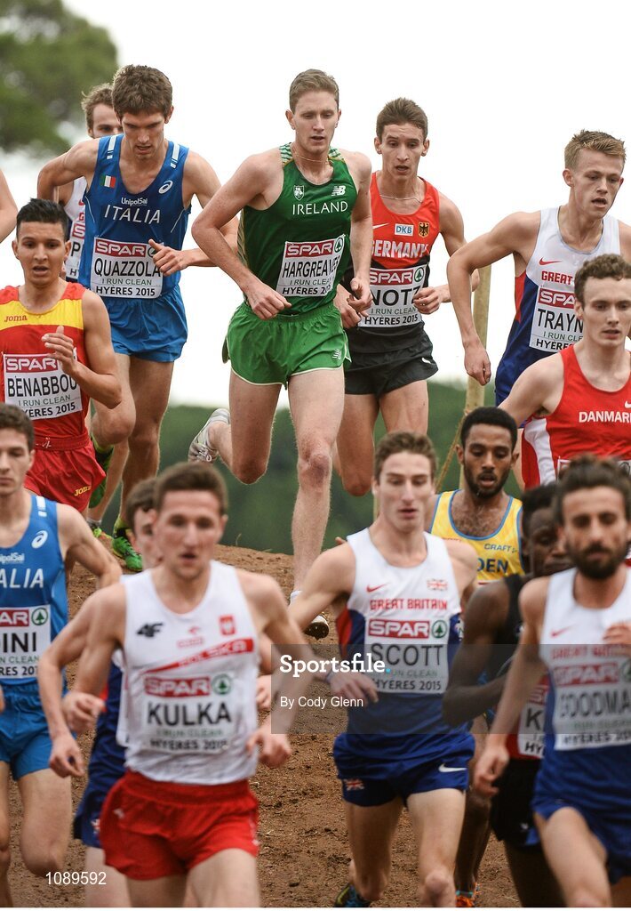 13 December 2015; Ireland's Brandon Hargreaves, top centre, on his way to a 31st place finish in the U23 Men's event. SPAR European Cross Country Championships Hyeres 2015. Paray Le Monial, France. Picture credit: Cody Glenn / SPORTSFILE