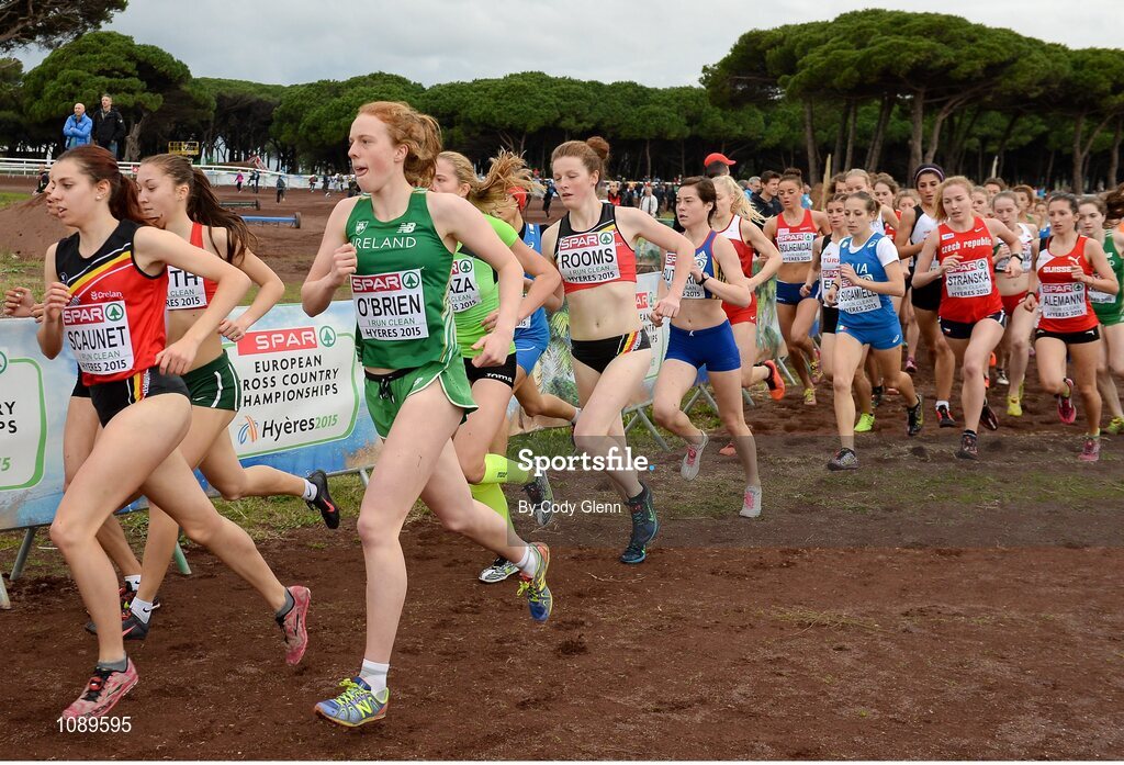 13 December 2015; Ireland's Emma O'Brien on her way to a 55th place finish in the Junior Women's event. SPAR European Cross Country Championships Hyeres 2015. Paray Le Monial, France. Picture credit: Cody Glenn / SPORTSFILE