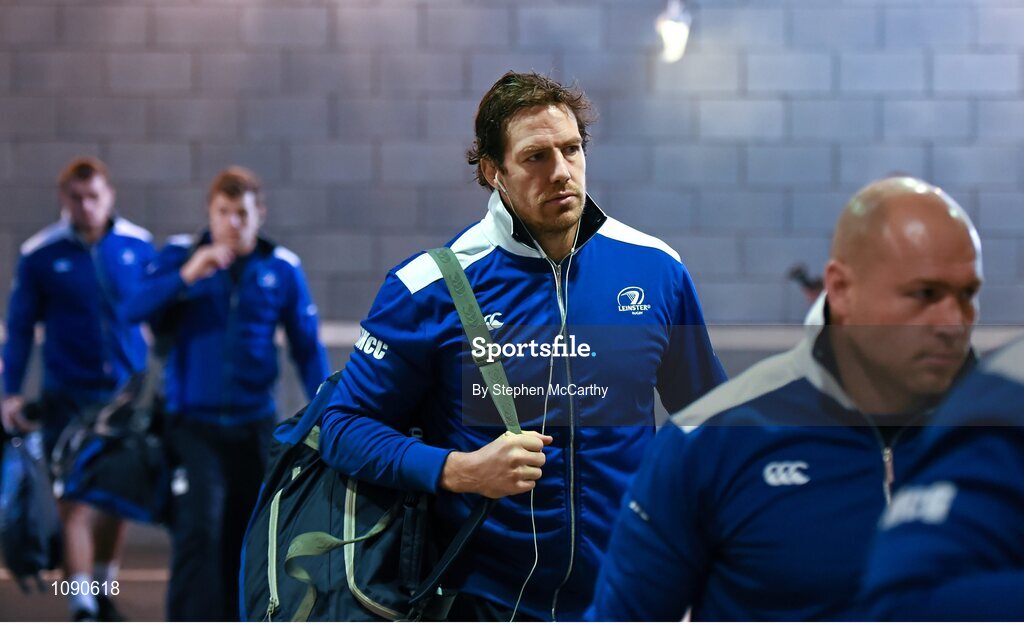19 December 2015; Mike McCarthy, Leinster, arrives ahead of the game. European Rugby Champions Cup, Pool 5, Round 4, Leinster v RC Toulon. Aviva Stadium, Lansdowne Road, Dublin. Picture credit: Stephen McCarthy / SPORTSFILE