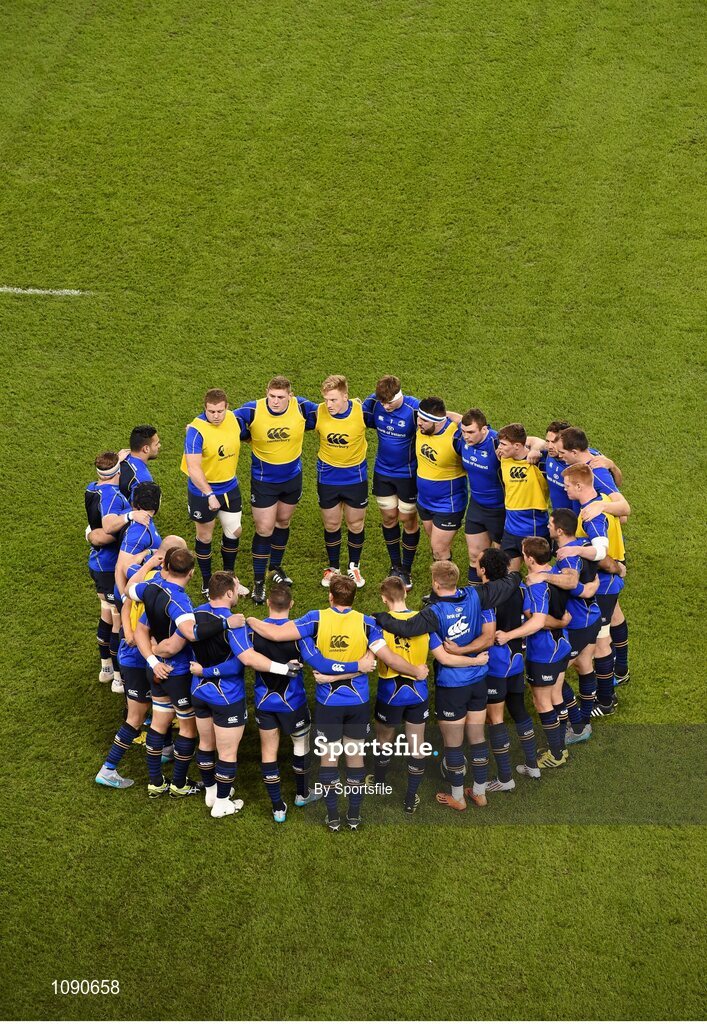 19 December 2015; The Leinster squad before the start of the match. European Rugby Champions Cup, Pool 5, Round 4, Leinster v RC Toulon. Aviva Stadium, Lansdowne Road, Dublin. Photo by Sportsfile