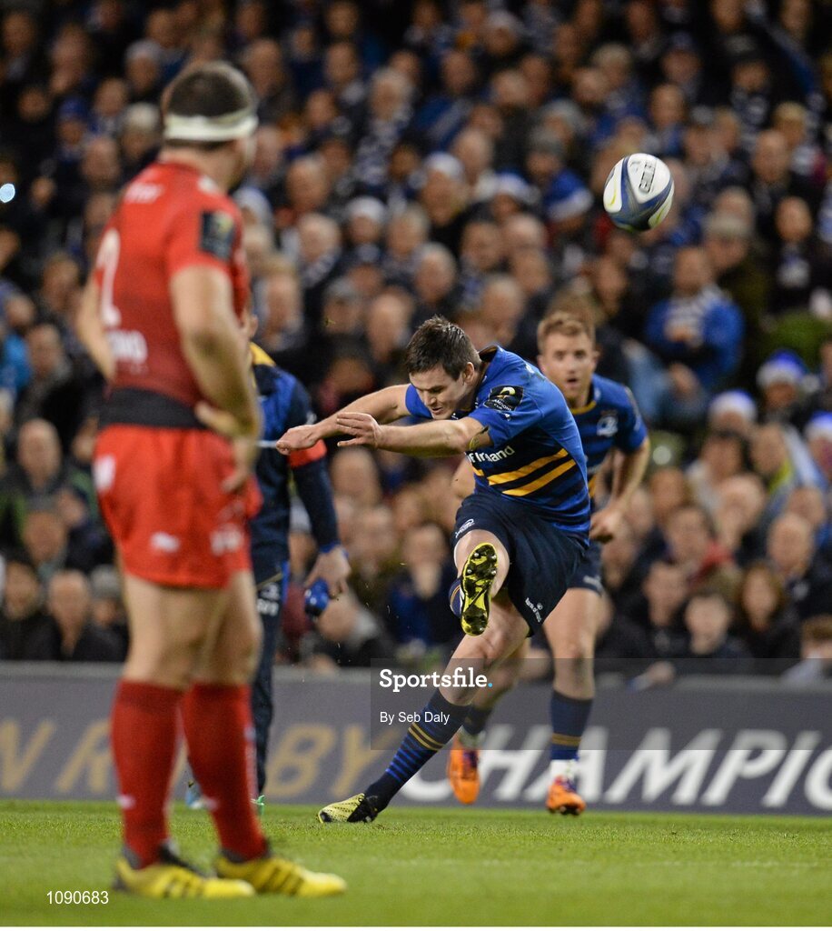 19 December 2015; Jonathan Sexton, Leinster, kicks his side's first penalty of the match. European Rugby Champions Cup, Pool 5, Round 4, Leinster v RC Toulon. Aviva Stadium, Lansdowne Road, Dublin. Picture credit: Seb Daly / SPORTSFILE