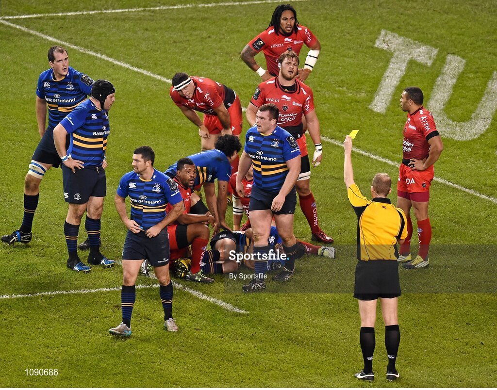 19 December 2015; Duane Vermeulen, 8, Toulon, is shown a yellow card and sin binned by referee Wayne Barnes. European Rugby Champions Cup, Pool 5, Round 4, Leinster v RC Toulon. Aviva Stadium, Lansdowne Road, Dublin. Photo by Sportsfile