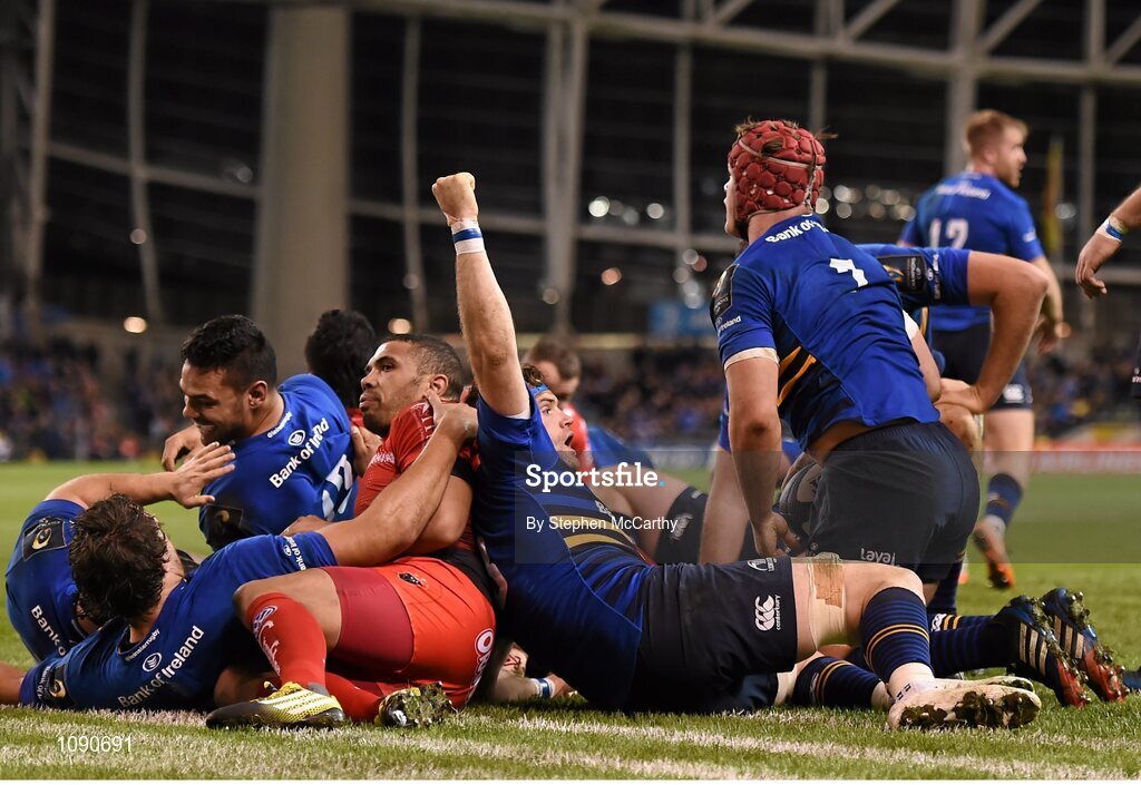 19 December 2015; Jamie Heaslip, Leinster, reacts after referee Wayne Barnes awarded them a penalty try. European Rugby Champions Cup, Pool 5, Round 4, Leinster v RC Toulon. Aviva Stadium, Lansdowne Road, Dublin. Picture credit: Stephen McCarthy / SPORTSFILE