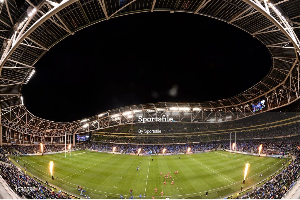 19 December 2015; A general view as the teams make their way out on to the pitch. European Rugby Champions Cup, Pool 5, Round 4, Leinster v RC Toulon. Aviva Stadium, Lansdowne Road, Dublin. Photo by Sportsfile