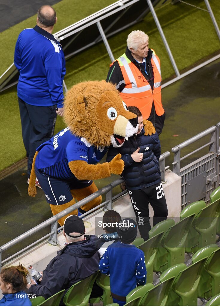 19 December 2015; Leinster mascot Leo the Lion. European Rugby Champions Cup, Pool 5, Round 4, Leinster v RC Toulon. Aviva Stadium, Lansdowne Road, Dublin. Photo by Sportsfile