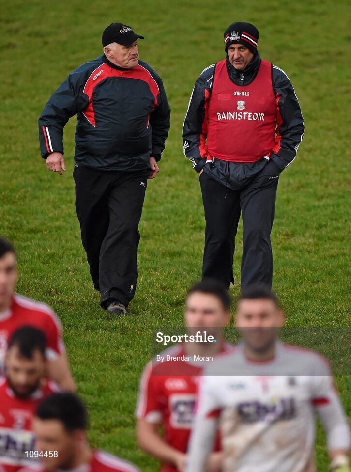 3 January 2016; New Cork manager Peadar Healy, right, and selector Eamonn Ryan leave the pitch after the game. McGrath Cup Football, Group B, Round 1, Cork v Limerick. Mallow GAA Grounds, Mallow, Co. Cork. Picture credit: Brendan Moran / SPORTSFILE