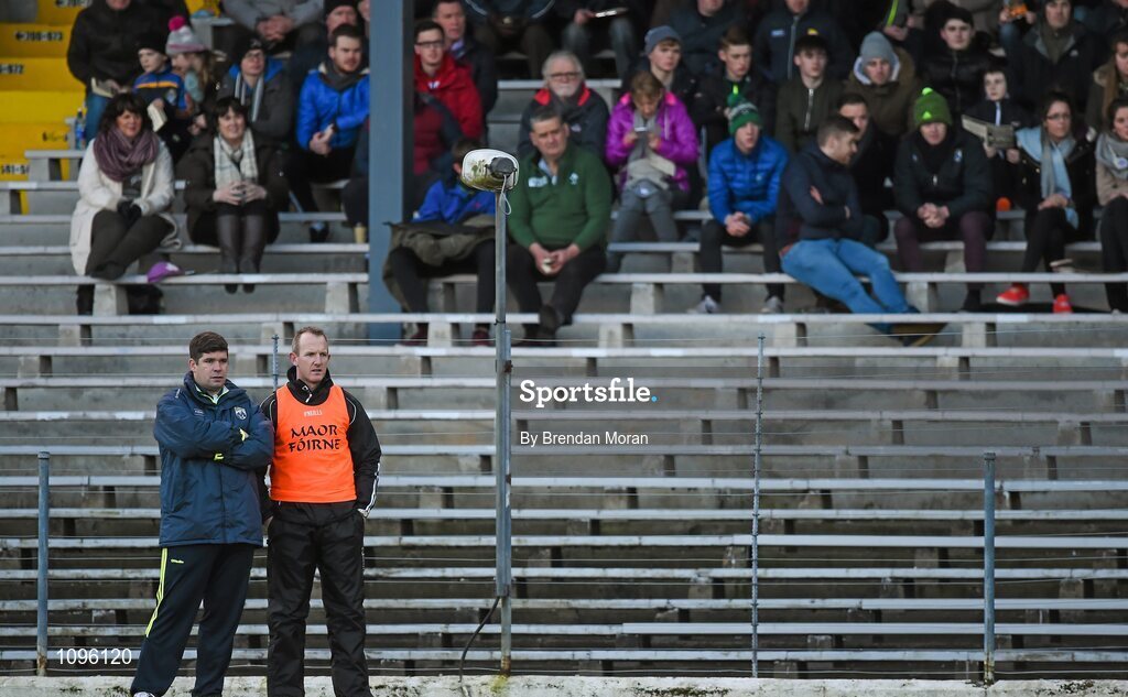 10 January 2016; Kerry manager Eamonn Fitzmaurice, left, and new selector Liam Hassett during the game. McGrath Cup, Group A, Round 2, Kerry v Clare, Fitzgerald Stadium, Killarney, Co. Kerry. Picture credit: Brendan Moran / SPORTSFILE