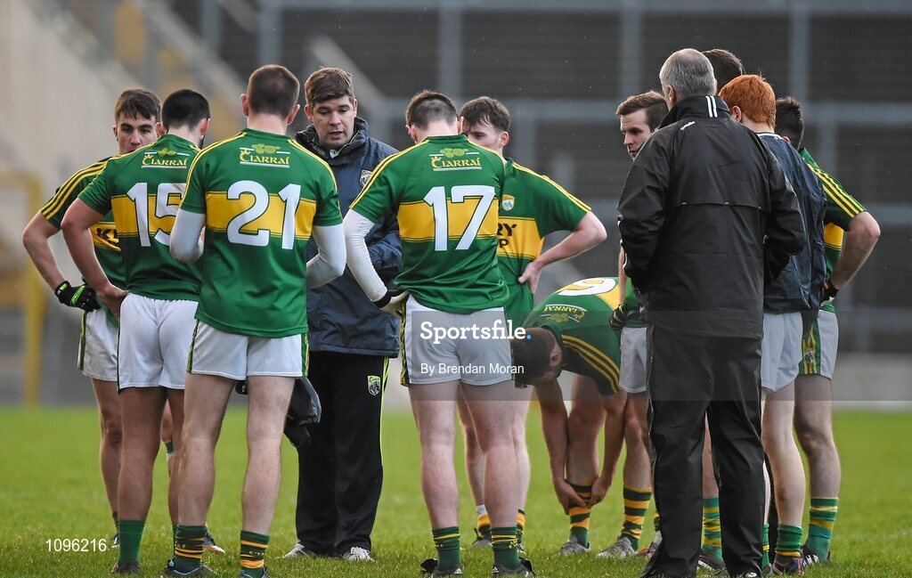 10 January 2016; Kerry manager Eamonn Fitzmaurice speaks to his players after the game. McGrath Cup, Group A, Round 2, Kerry v Clare, Fitzgerald Stadium, Killarney, Co. Kerry. Picture credit: Brendan Moran / SPORTSFILE