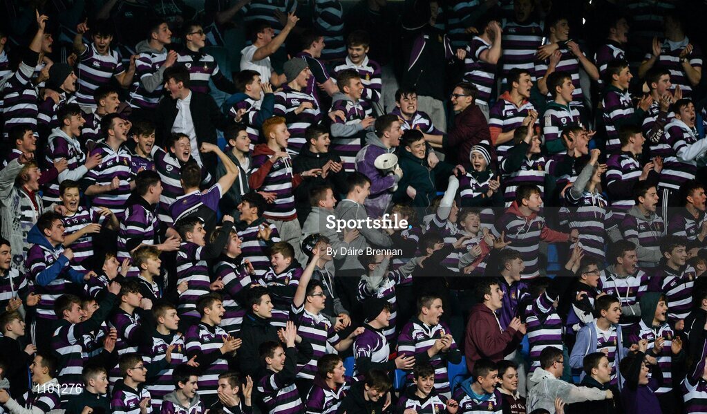 24 January 2016; Terenure College supporters celebrate their side's second try. Bank of Ireland Leinster Schools Senior Cup, 1st Round, St Mary's College v Terenure College, Donnybrook Stadium, Donnybrook, Dublin. Picture credit: Dáire Brennan / SPORTSFILE