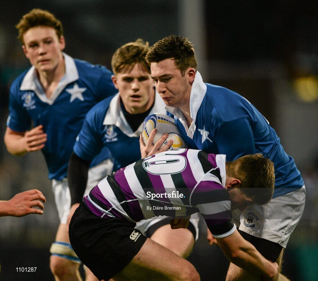 24 January 2016; Tomas Tierney, St Mary's College, is tackled by Josh Long, Terenure College. Bank of Ireland Leinster Schools Senior Cup, 1st Round, St Mary's College v Terenure College, Donnybrook Stadium, Donnybrook, Dublin. Picture credit: Dáire Brennan / SPORTSFILE