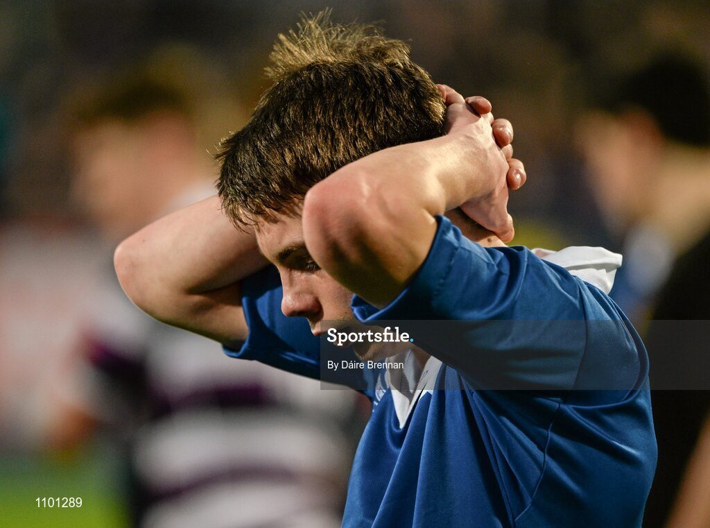 24 January 2016; A dejected Cian Buckley, St Mary's College, after the game. Bank of Ireland Leinster Schools Senior Cup, 1st Round, St Mary's College v Terenure College, Donnybrook Stadium, Donnybrook, Dublin. Picture credit: Dáire Brennan / SPORTSFILE