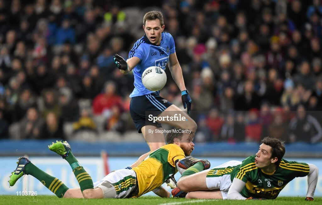 30 January 2016; Dean Rock, Dublin, reacts after his goal bound shot was saved by David Moran and the Kerry goalkeeper Brendan Kealy. Allianz Football League, Division 1, Round 1, Dublin v Kerry. Croke Park, Dublin. Picture credit: Stephen McCarthy / SPORTSFILE