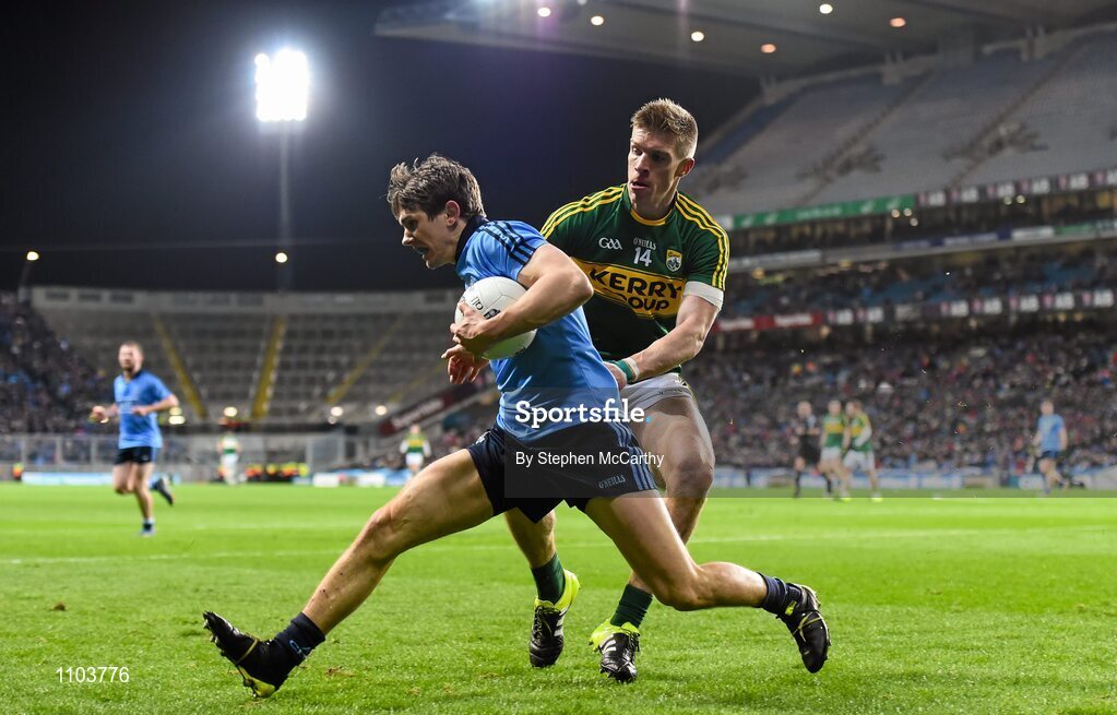 30 January 2016; Michael Fitzsimons, Dublin, in action against Tommy Walsh, Kerry. Allianz Football League, Division 1, Round 1, Dublin v Kerry. Croke Park, Dublin. Picture credit: Stephen McCarthy / SPORTSFILE