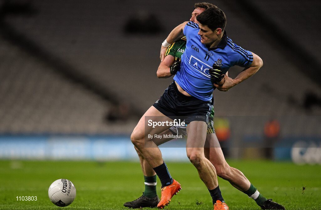 30 January 2016; Diarmuid Connolly, Dublin, in action against Jonathan Lyne, Kerry. Allianz Football League, Division 1, Round 1, Dublin v Kerry, Croke Park, Dublin. Picture credit: Ray McManus / SPORTSFILE