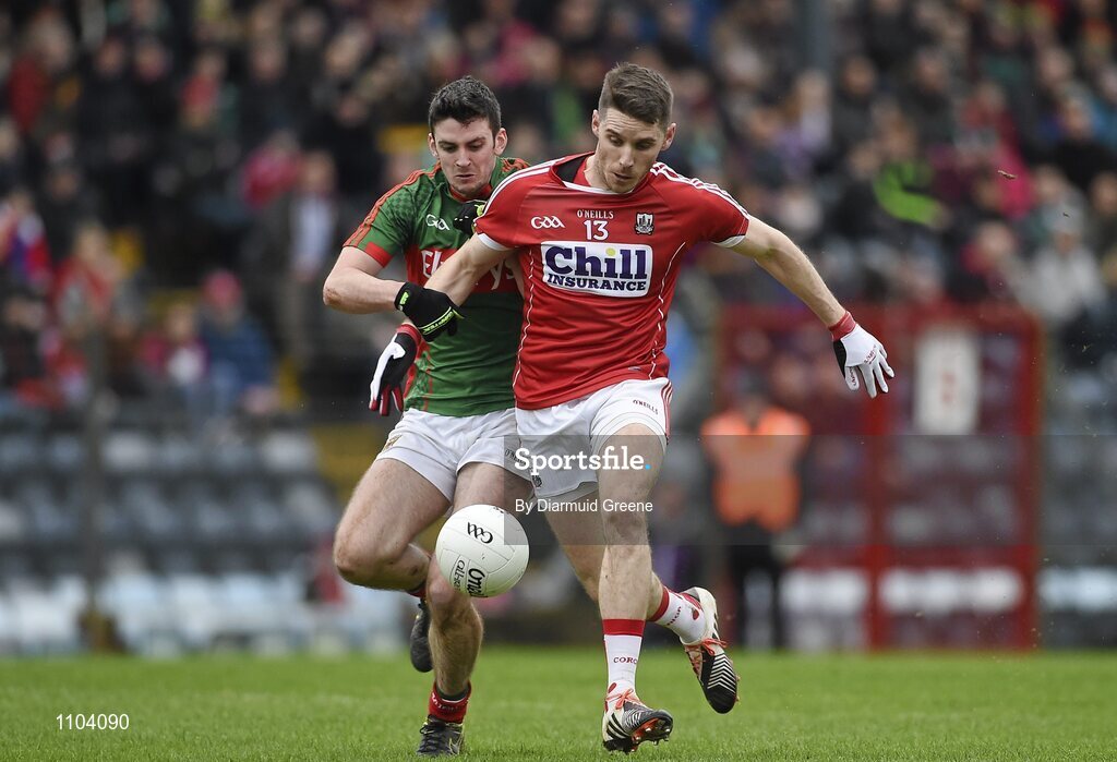 31 January 2016; Daniel Goulding, Cork, in action against Brendan Harrison, Mayo. Allianz Football League, Division 1, Round 1, Cork v Mayo. Páirc Ui Rinn, Cork. Picture credit: Diarmuid Greene / SPORTSFILE