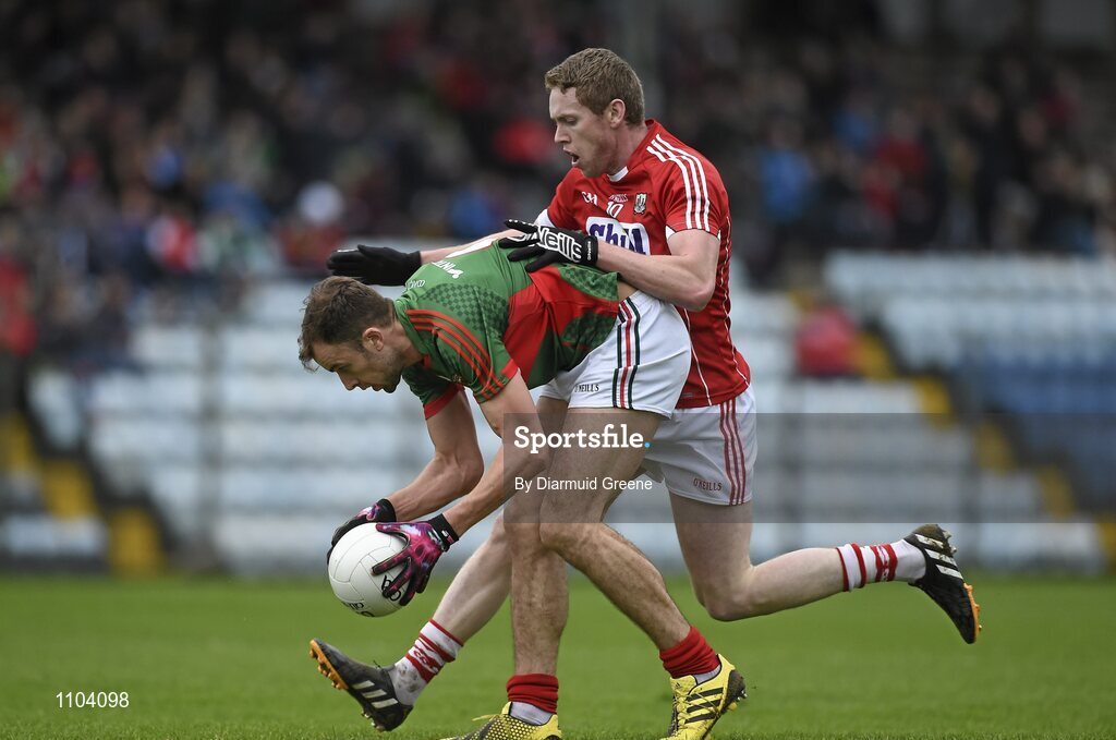 31 January 2016; Jason Gibbons, Mayo, in action against Andrew O'SullEvan, Cork. Allianz Football League, Division 1, Round 1, Cork v Mayo. Páirc Ui Rinn, Cork. Picture credit: Diarmuid Greene / SPORTSFILE