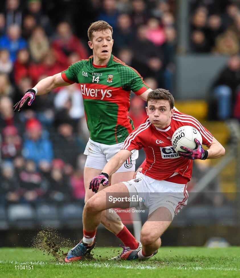 31 January 2016; Mark Collins, Cork, in action against Donal Vaughan, Mayo. Allianz Football League, Division 1, Round 1, Cork v Mayo. Páirc Ui Rinn, Cork. Picture credit: Diarmuid Greene / SPORTSFILE