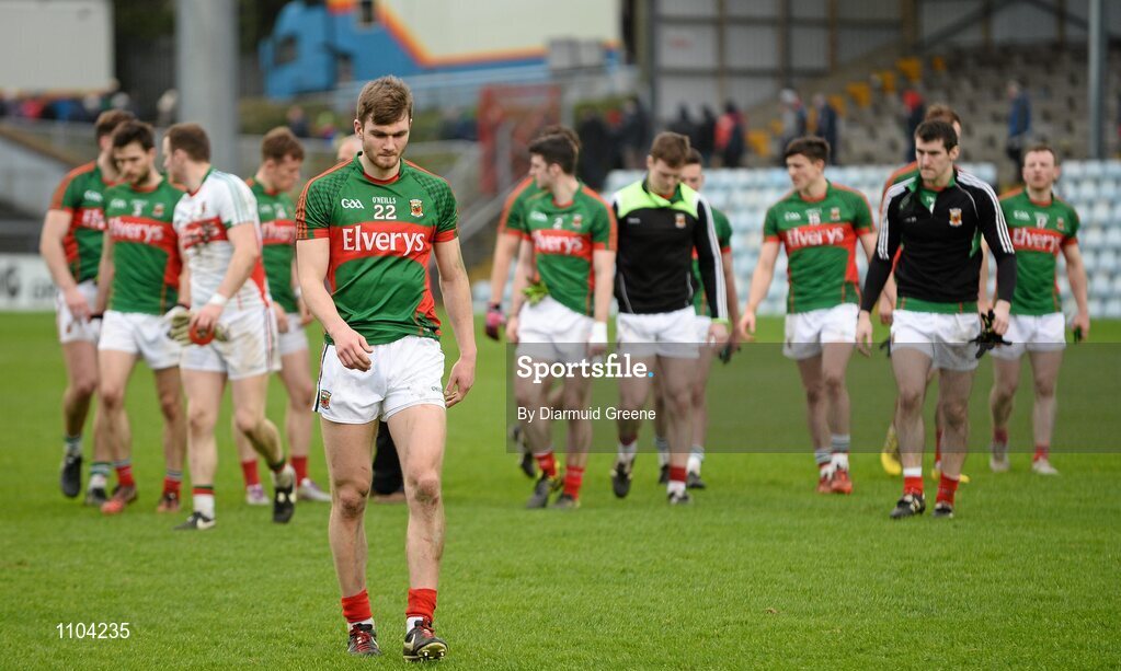 31 January 2016; Mayo's Conor O'Shea leads his team off the pitch after defeat to Cork. Allianz Football League, Division 1, Round 1, Cork v Mayo. Páirc Ui Rinn, Cork. Picture credit: Diarmuid Greene / SPORTSFILE