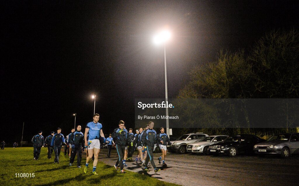6 February 2016; The Cavan squad make their way back to the dressing rooms after warming up on the training pitch before the game. Allianz Football League, Division 2, Round 2, Cavan v Derry. Kingspan Breffni Park, Cavan. Picture credit: Piaras Ó Mídheach / SPORTSFILE