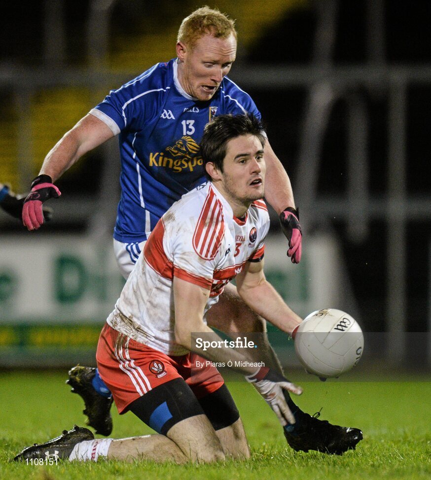 6 February 2016; Chrissy McKaigue, Derry, in action against Cian Mackey, Cavan. Allianz Football League, Division 2, Round 2, Cavan v Derry. Kingspan Breffni Park, Cavan. Picture credit: Piaras Ó Mídheach / SPORTSFILE