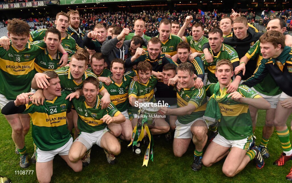 7 February 2016; The Glenmore players celebrate with the cup. AIB GAA Hurling All-Ireland Junior Club Championship Final, Eoghan Rua v Glenmore. Croke Park, Dublin. Picture credit: Ray McManus / SPORTSFILE