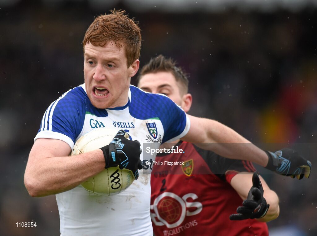 7 February 2016; Kieran Duffy, Monaghan, in action against Ryan Boyle, Down. Allianz Football League, Division 1, Round 2, Monaghan v Down. St Tiernach's Park, Clones, Co. Monaghan. Picture credit; Philip Fitzpatrick / SPORTSFILE