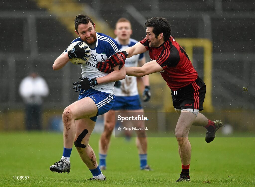 7 February 2016; Owen Duffy, Monaghan, in action against Kevin Mc Kernan, Down. Allianz Football League, Division 1, Round 2, Monaghan v Down. St Tiernach's Park, Clones, Co. Monaghan. Picture credit; Philip Fitzpatrick / SPORTSFILE