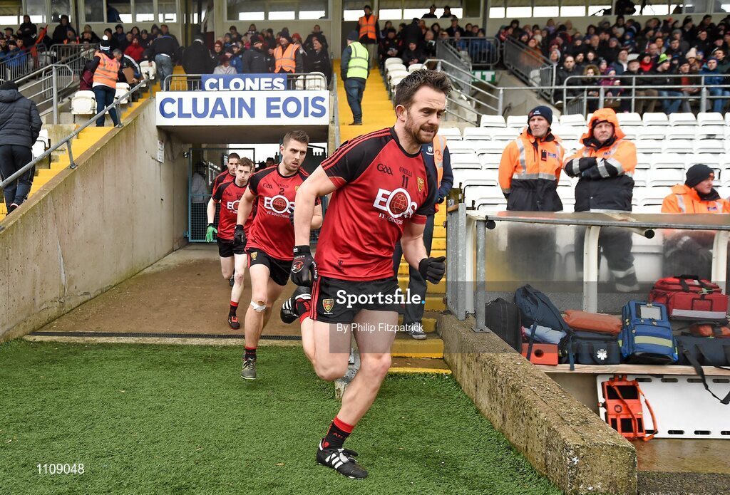 7 February 2016; The Down team make their way out for the start of the game. Allianz Football League, Division 1, Round 2, Monaghan v Down. St Tiernach's Park, Clones, Co. Monaghan. Picture credit; Philip Fitzpatrick / SPORTSFILE