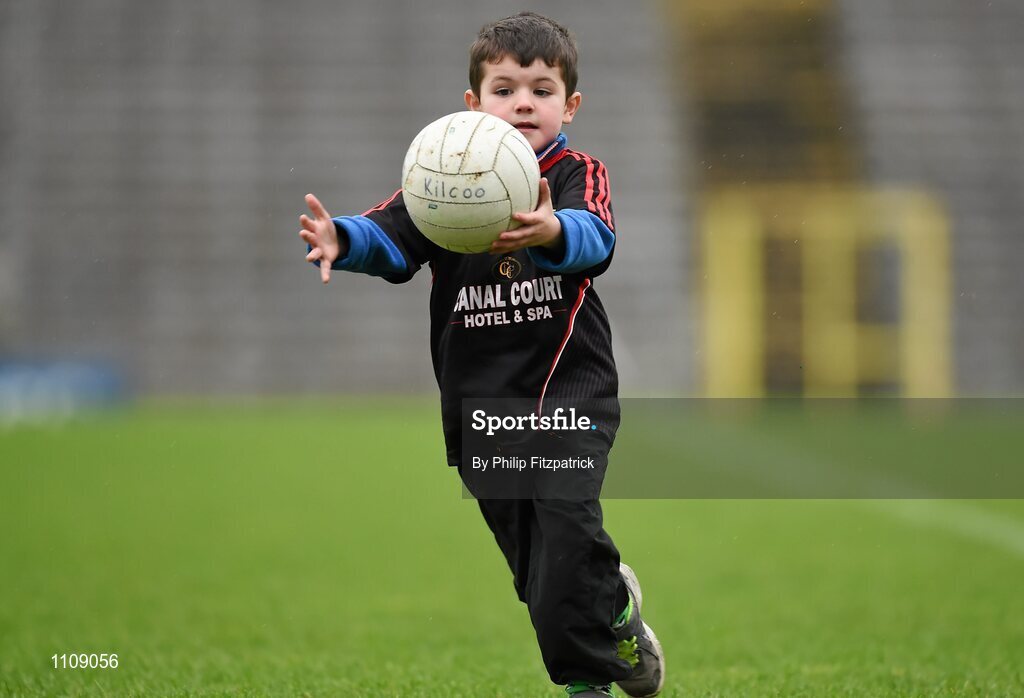 7 February 2016; 5 year old Donal Og Keane, from Down, practices on the pitch before the game. Allianz Football League, Division 1, Round 2, Monaghan v Down. St Tiernach's Park, Clones, Co. Monaghan. Picture credit; Philip Fitzpatrick / SPORTSFILE