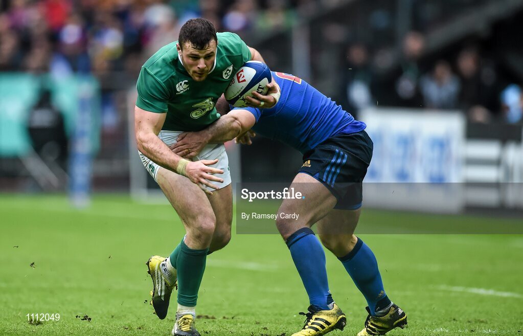 13 February 2016; Robbie Henshaw, Ireland, is tackled by Jonathan Danty, France. RBS Six Nations Rugby Championship, France v Ireland. Stade de France, Saint Denis, Paris, France. Picture credit: Ramsey Cardy / SPORTSFILE