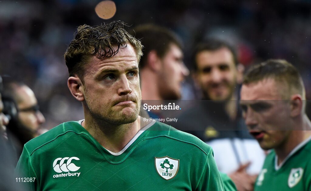 13 February 2016; Ireland's Jamie Heaslip following his side's defeat. RBS Six Nations Rugby Championship, France v Ireland. Stade de France, Saint Denis, Paris, France. Picture credit: Ramsey Cardy / SPORTSFILE