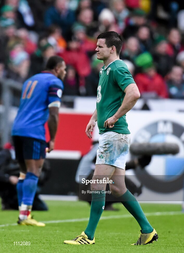 13 February 2016; Ireland's Jonathan Sexton walks off the pitch after picking up an injury. RBS Six Nations Rugby Championship, France v Ireland. Stade de France, Saint Denis, Paris, France. Picture credit: Ramsey Cardy / SPORTSFILE