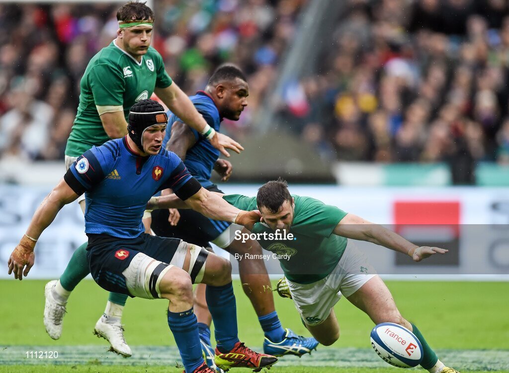 13 February 2016; Robbie Henshaw, Ireland, is tackled by Yoann Maestri, France. RBS Six Nations Rugby Championship, France v Ireland. Stade de France, Saint Denis, Paris, France. Picture credit: Ramsey Cardy / SPORTSFILE