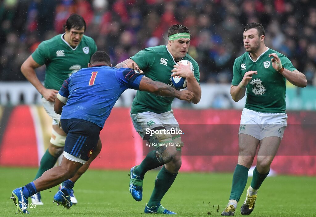 13 February 2016; CJ Stander, Ireland, is tackled by Jefferson Poirot, France. RBS Six Nations Rugby Championship, France v Ireland. Stade de France, Saint Denis, Paris, France. Picture credit: Ramsey Cardy / SPORTSFILE