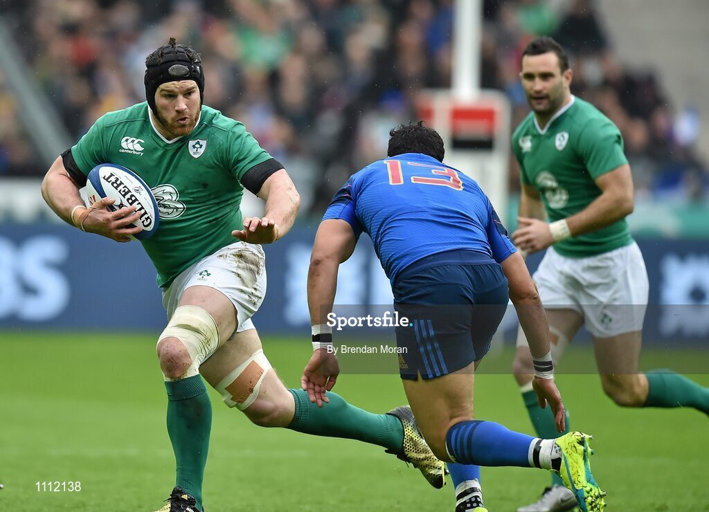 13 February 2016; Sean O'Brien, Ireland, takes on Maxime Mermoz, France. RBS Six Nations Rugby Championship, France v Ireland. Stade de France, Saint Denis, Paris, France. Picture credit: Brendan Moran / SPORTSFILE