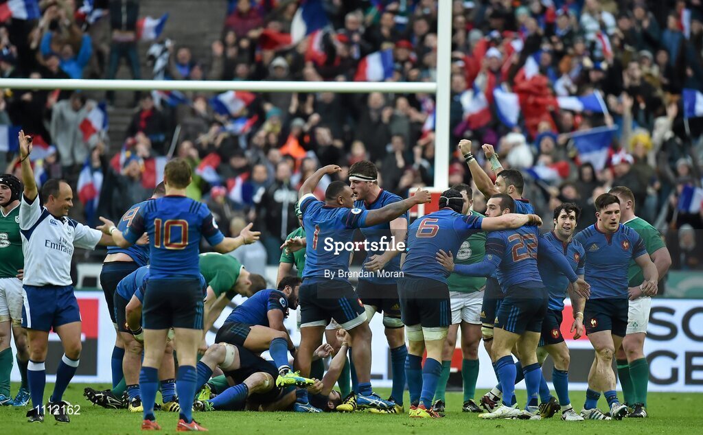 13 February 2016; The French players celebrate winning a late penalty with time up. RBS Six Nations Rugby Championship, France v Ireland. Stade de France, Saint Denis, Paris, France. Picture credit: Brendan Moran / SPORTSFILE