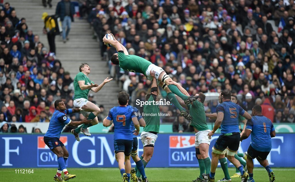13 February 2016; Devin Toner, Ireland, wins possession in a lineout. RBS Six Nations Rugby Championship, France v Ireland. Stade de France, Saint Denis, Paris, France. Picture credit: Brendan Moran / SPORTSFILE