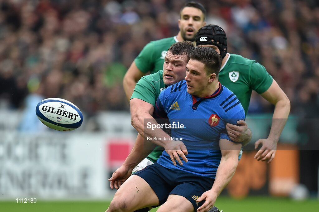 13 February 2016; Camille Chat, France, is tackled by Jack McGrath, Ireland. RBS Six Nations Rugby Championship, France v Ireland. Stade de France, Saint Denis, Paris, France. Picture credit: Brendan Moran / SPORTSFILE