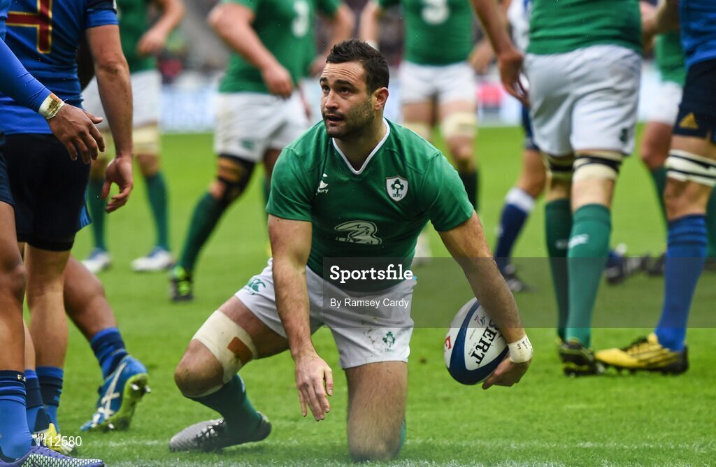 13 February 2016; Dave Kearney, Ireland, after scoring a try for his side early in the game which was subsequently disallowed. RBS Six Nations Rugby Championship, France v Ireland. Stade de France, Saint Denis, Paris, France. Picture credit: Ramsey Cardy / SPORTSFILE