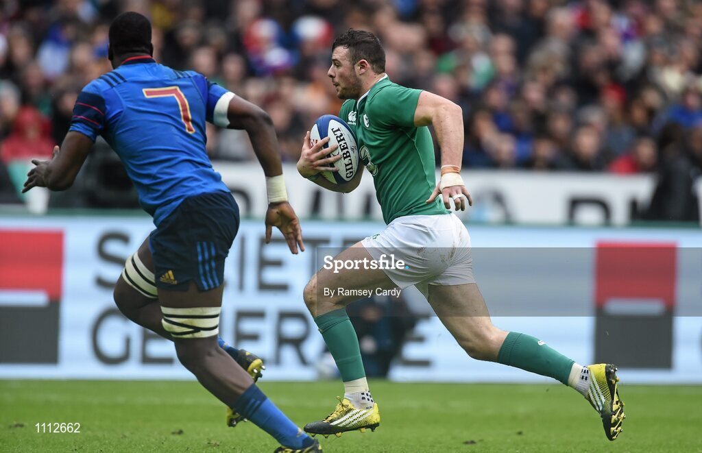 13 February 2016; Robbie Henshaw, Ireland, in action against Yacouba Camara, France. RBS Six Nations Rugby Championship, France v Ireland. Stade de France, Saint Denis, Paris, France. Picture credit: Ramsey Cardy / SPORTSFILE