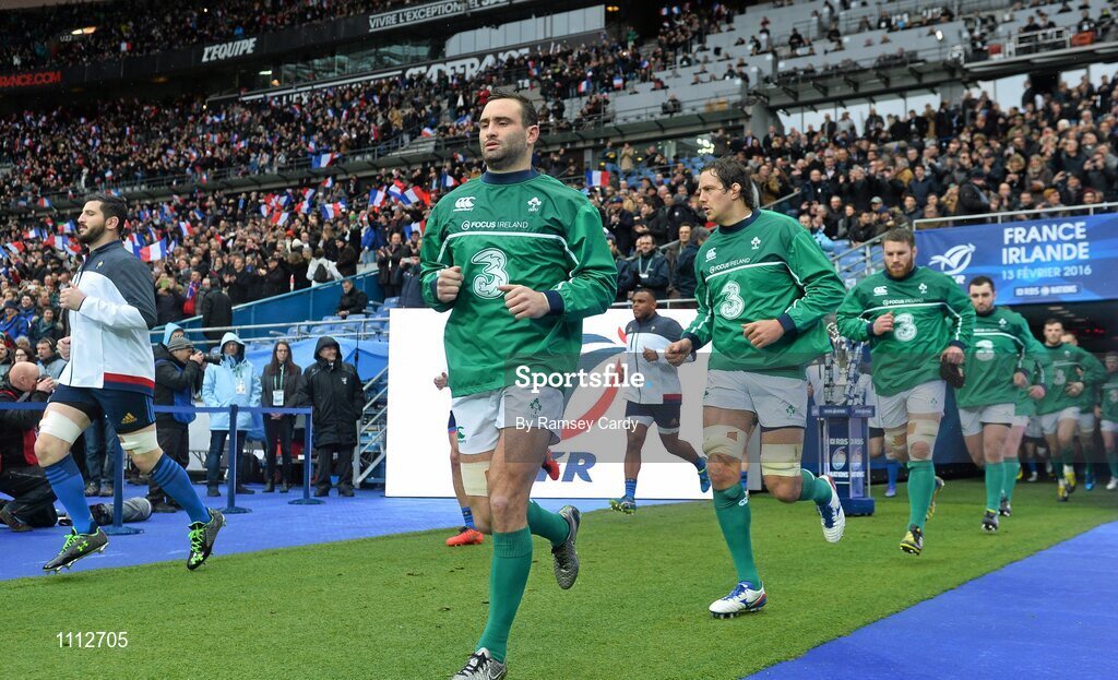 13 February 2016; Ireland's Dave Kearney runs out ahead of the game. RBS Six Nations Rugby Championship, France v Ireland. Stade de France, Saint Denis, Paris, France. Picture credit: Ramsey Cardy / SPORTSFILE