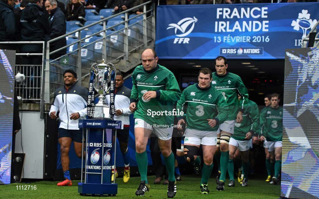 13 February 2016; Ireland captain Rory Best leads his side out ahead of the game. RBS Six Nations Rugby Championship, France v Ireland. Stade de France, Saint Denis, Paris, France. Picture credit: Ramsey Cardy / SPORTSFILE