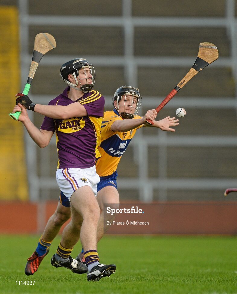 21 February 2016; Aidan Nolan, Wexford, in action against Jack Brown, Clare. Allianz Hurling League, Division 1B, Round 2, Wexford v Clare. Innovate Wexford Park, Wexford. Picture credit: Piaras Ó Mídheach / SPORTSFILE