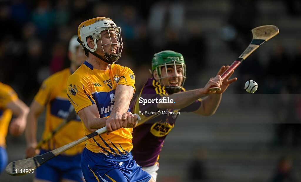 21 February 2016; Conor McGrath, Clare, in action against Shaun Murphy, Wexford. Allianz Hurling League, Division 1B, Round 2, Wexford v Clare. Innovate Wexford Park, Wexford. Picture credit: Piaras Ó Mídheach / SPORTSFILE