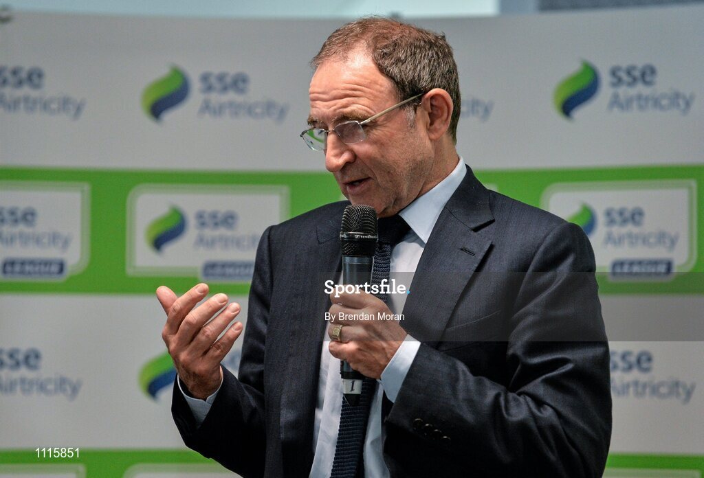 24 February 2016; Republic of Ireland manager Martin O'Neill is interviewed during the launch of the 2016 SSE Airtricity League. Aviva Stadium, Dublin. Picture credit: Brendan Moran / SPORTSFILE
