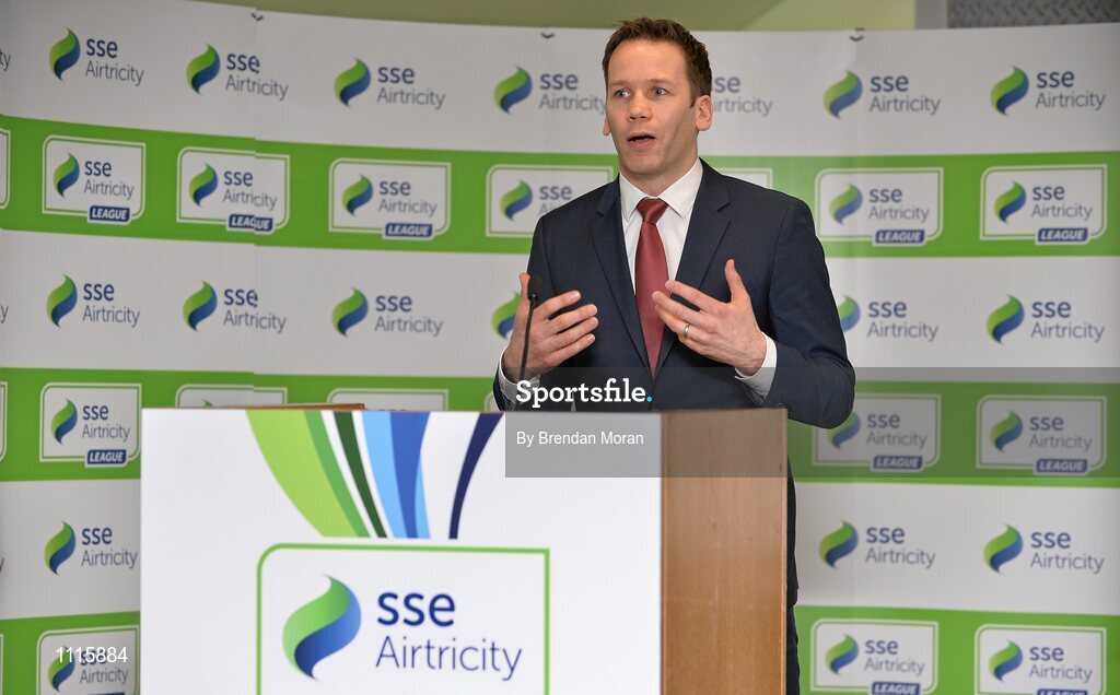 24 February 2016; Speaking at the launch of the 2016 SSE Airtricity League is Ronan Brady, Head of Digital & Marketing, SSE Airtricity. Aviva Stadium, Dublin. Picture credit: Brendan Moran / SPORTSFILE