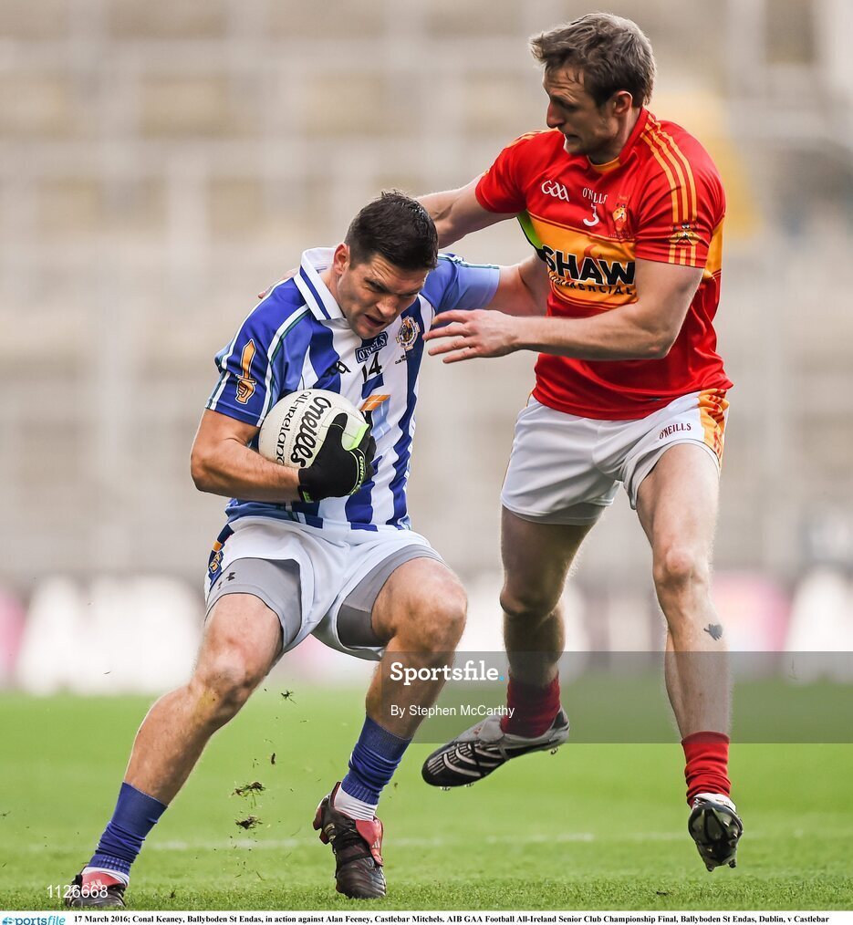 17 March 2016; Conal Keaney, Ballyboden St Endas, in action against Alan Feeney, Castlebar Mitchels. AIB GAA Football All-Ireland Senior Club Championship Final, Ballyboden St Endas, Dublin, v Castlebar Mitchels, Mayo. Croke Park, Dublin. Picture credit: Stephen McCarthy / SPORTSFILE
